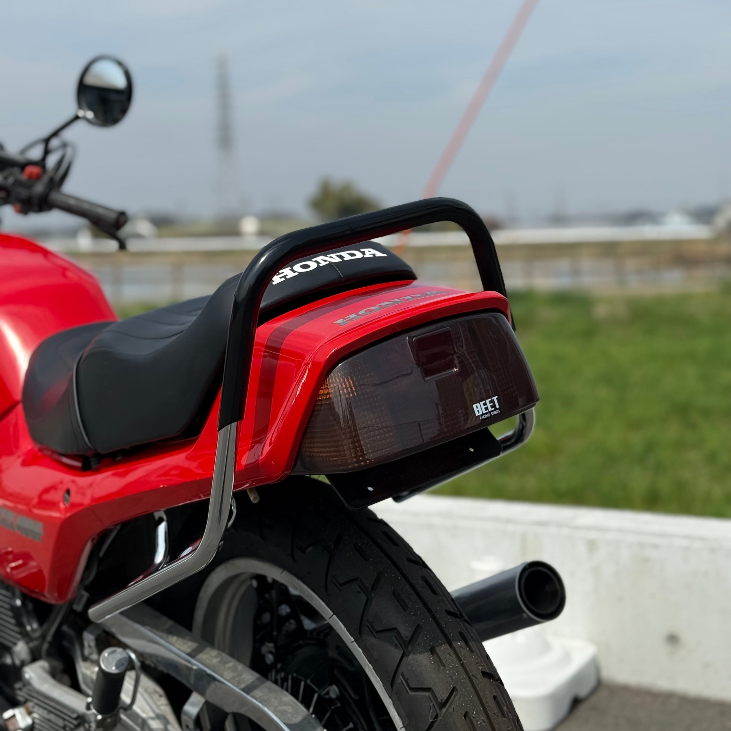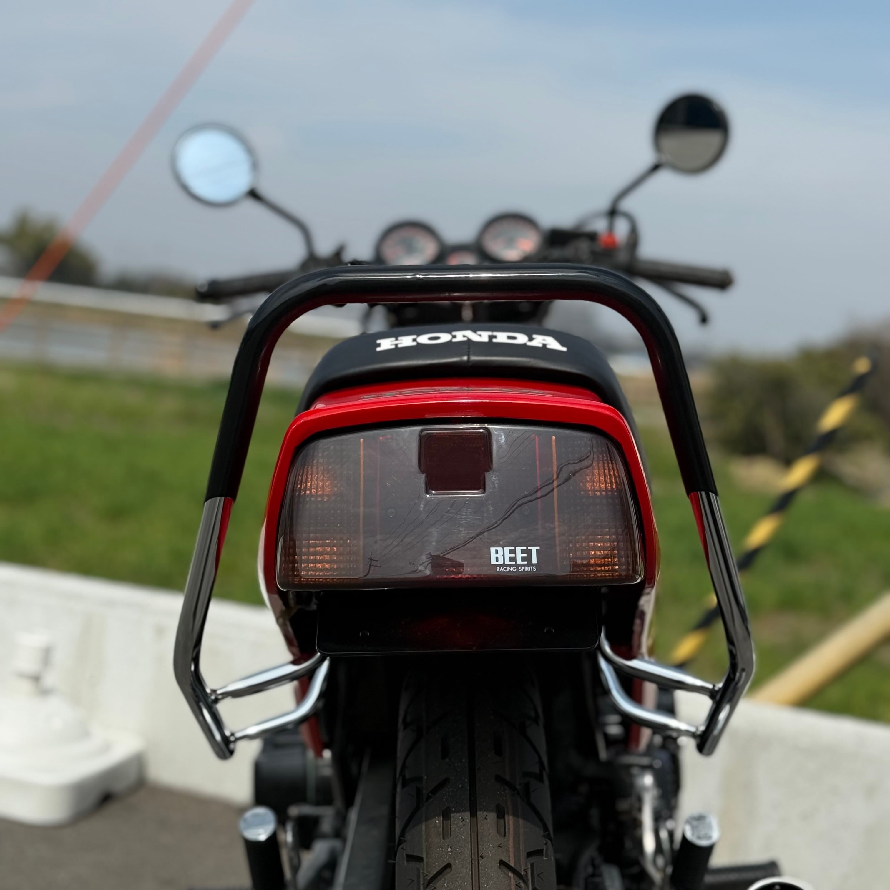 CBX400Fの後方シルエットを引き締める、RFオリジナル設計のタンデムバー。